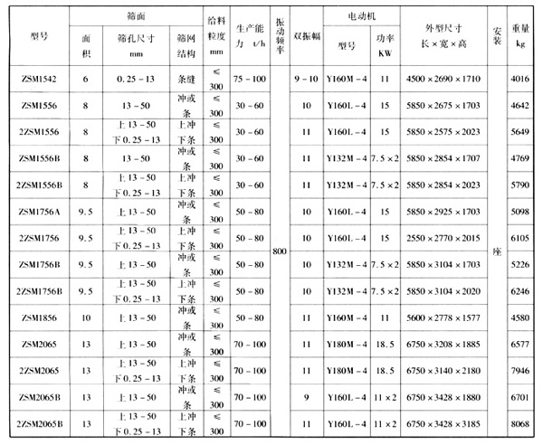 1、篩機分單層和雙層,并有單電機齒輪拖運和雙電機自同步拖運之分。單電機拖運有左裝和右裝之分。 2、篩網結構聚氨酯篩板,沖孔篩板,如選用編織篩網和橡膠篩板可按要求設計。 3、為滿足篩分效率要求,必要時可使篩面與水平面成傾角安裝其值為2-10。 4、基礎螺栓除ZSM185振動篩螺栓有M20和M16兩種規格外,其余所有篩機基礎螺栓均為M20,皆由用戶自備。